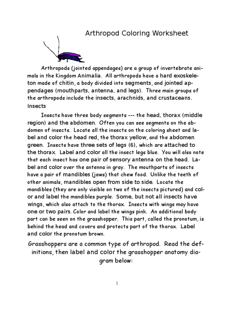 Kami Export Avi Rami Arthropod Coloring Pdf Arthropod Coloring Worksheet Arthropods Jointed Appendages Are A Group Of Invertebrate Animals In Course Hero